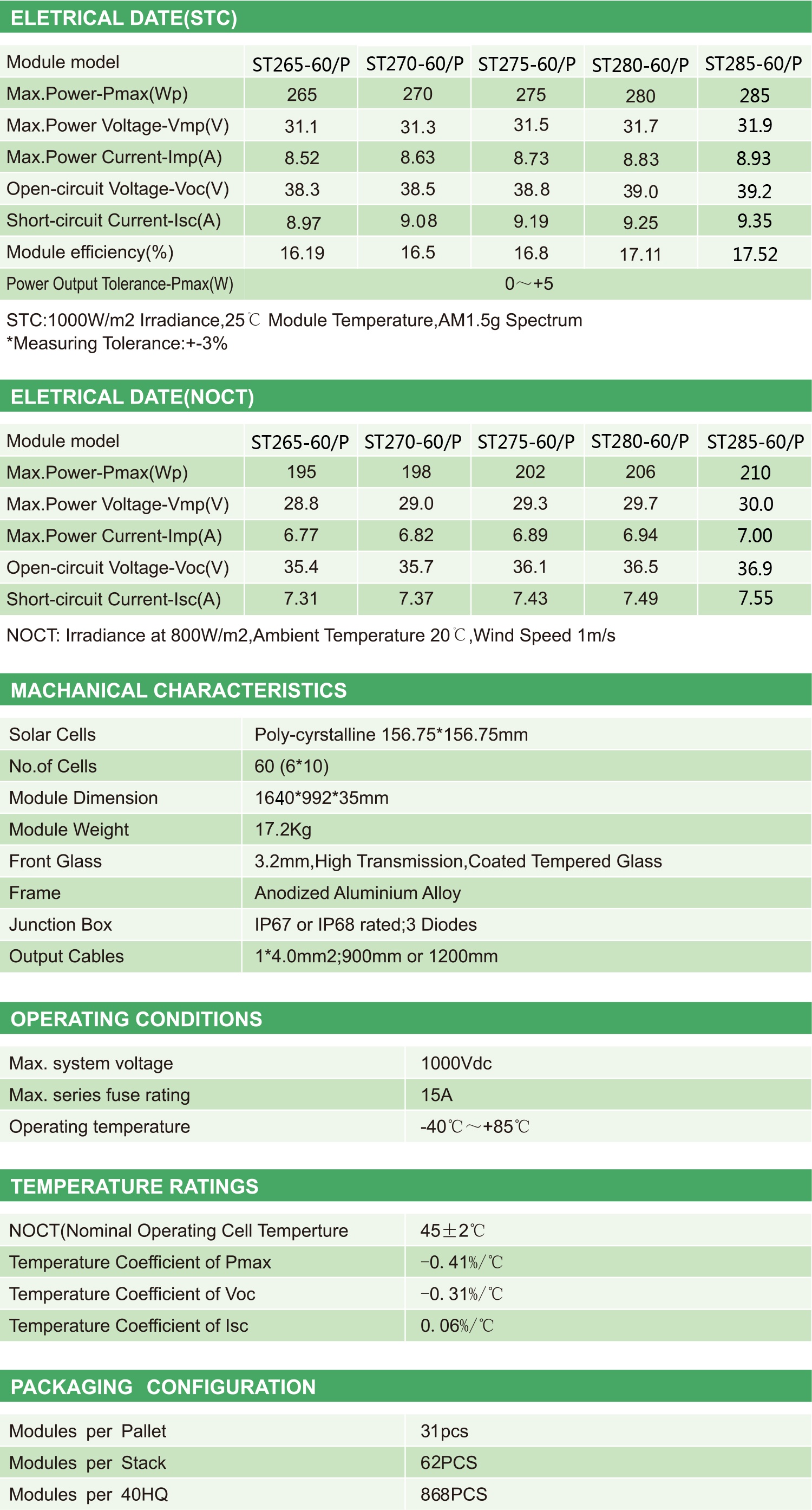 Maximum power up to 285W, conversion efficiency up to 17.52%